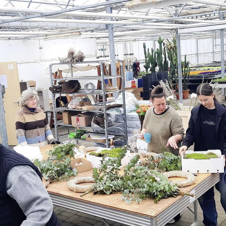 schöne Ostergestecke in der Gärtnerei Fahle gebastelt.